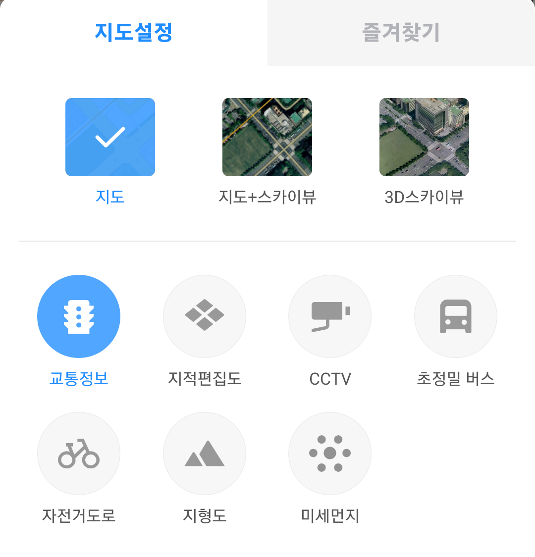 카카오맵에서는 지도를 다음 세 가지 유형으로 설정할 수 있어요: