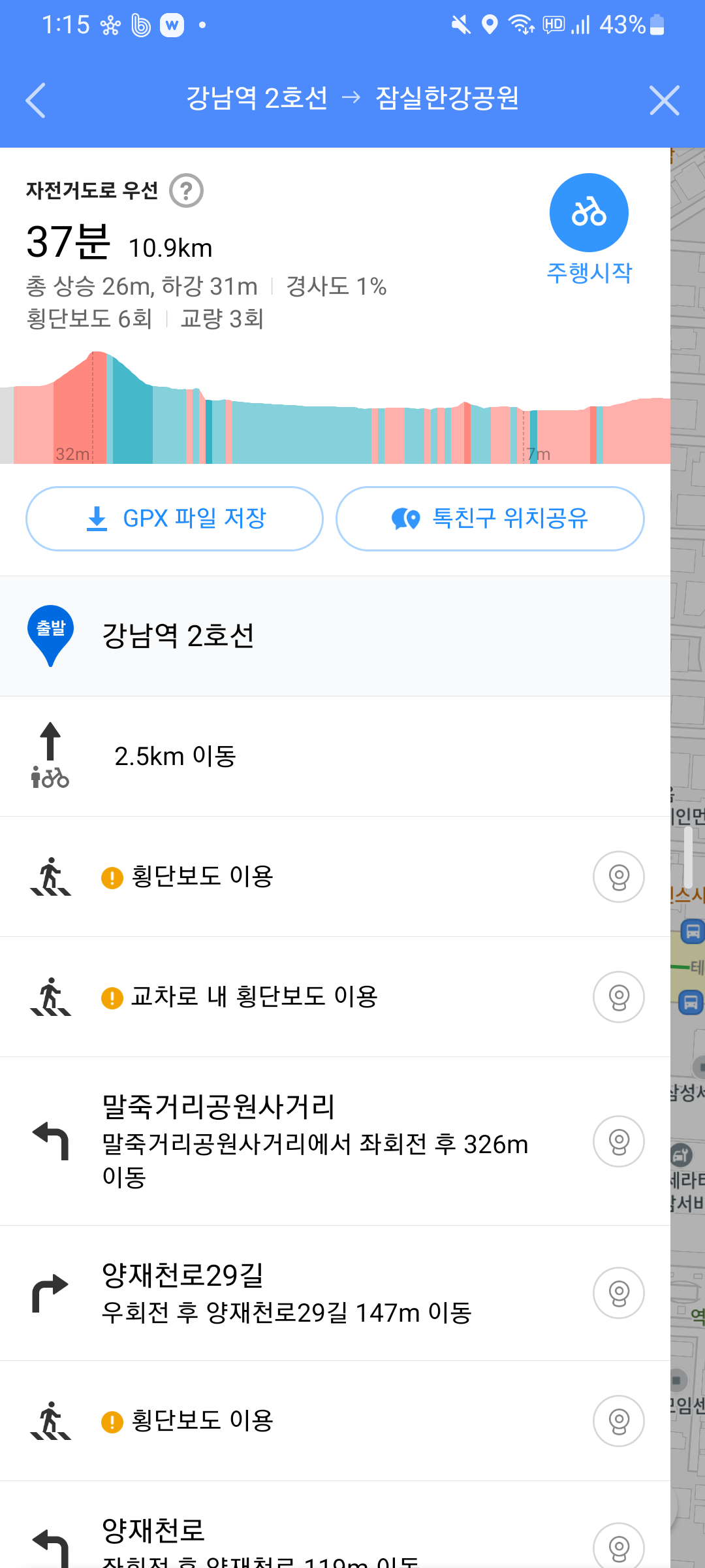 - 구간별 자전거도로 확인 : 자전거길이 끊기지 않는지, 어떤 다리를 이용하면 되는지 미리 파악 가능