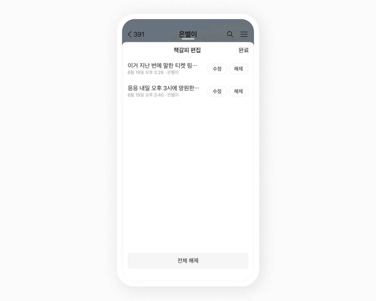 책갈피가 더 이상 필요 없을 때는 해제하면 됩니다.