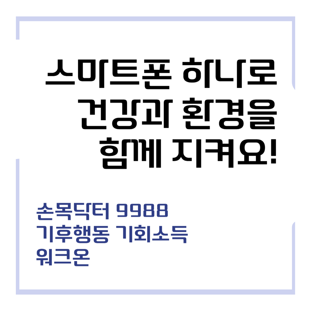 요즘은 스마트폰 하나만 있으면 건강도 챙기고, 환경 보호 활동도 손쉽게 할 수 있습니다. 시니어도 충분히 활용할 수 있도록 쉬운 기능과 친절한 안내를 제공하는 앱들이 많아졌는데요. 오늘 소개해 드리는 앱들을 활용하면 걷기만 해도 포인트를 받을 수 있고, 탄소중립 실천 활동을 통해 보상을 받을 수도 있답니다. 이 글을 읽고, 지금 바로 건강과 환경을 위한 첫걸음을 시작해 보세요!목차손목닥터 9988기후행동 기회소득워크온   1. 손목닥터 9988서울시에서 운영하는 건강관리 앱, 걷기만 해도 포인트 지급! 서울시에서 제공하는 건강관리 앱 ‘손목닥터 9988’을 사용하면, 일상 속 걷기와 다양한 건강 활동을 통해 포인트를 받을 수 있습니다. 이렇게 받은 포인트는 서울페이 머니로 전환하여 서울페이 가맹점에서 실..